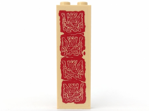 Brick 1 x 2 x 5 with Dark Red Aztec Carvings Pattern (Sticker) - Set 7627