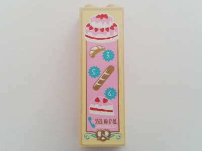 Brick 1 x 2 x 5 with Cakes, Bread and Croissant Pattern (Sticker) - Set 41006