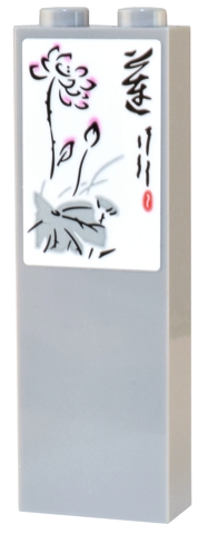 Brick 1 x 2 x 5 with White Ink Wash Painting of Lotus Flower and Leaves and Calligraphy Character Pattern (Sticker) - Set 80036