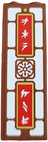 Brick 1 x 2 x 5 with White Window Panes, Shuriken Throwing Star and Ninjago Logogram Letter J, K, N, C, Z and L in Red Rectangles with Gold Outline Pattern (Sticker) - Set 71767