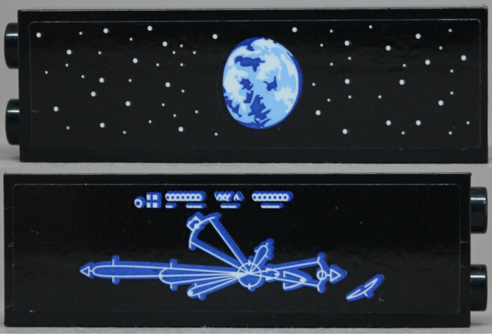 Brick 1 x 2 x 5 with Blue Planet, White Stars and Blueprint Pattern on Both Sides (Stickers) - Set 75159