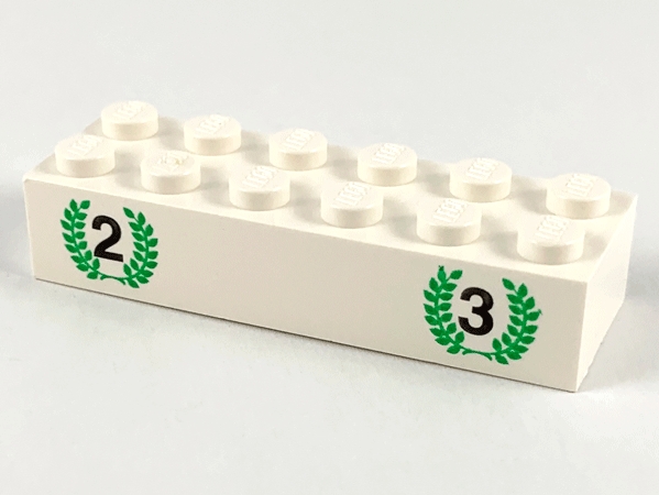 Brick 2 x 6 with Black Number 2 and Number 3, Green Laurels Pattern