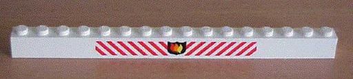 Brick 1 x 16 with Fire Logo Badge and Red Danger Stripes Pattern