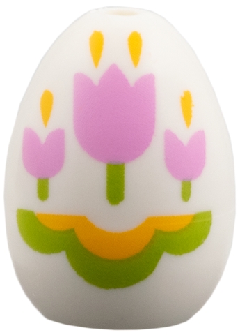 Egg with Small Pin Hole with Bright Pink Tulips, Lime Stems, Bright Light Orange Trim Easter Pattern