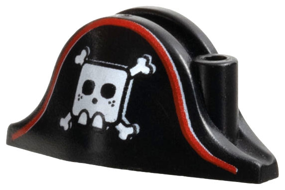 Minifigure, Headgear Hat, Pirate Bicorne with Large Square Skull and Crossbones and Red Line Pattern