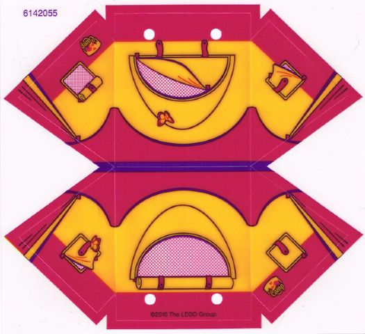 Plastic Tent with Dark Purple Ridge Line and Bright Light Orange Friends Flap and Butterfly Pattern