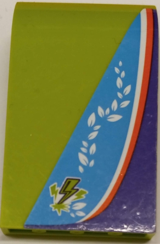 Panel 3 x 4 x 6 Curved Top with Lime Lightning Bolts, Leaves, Orange and White Stripes on Dark Azure and Dark Purple Background Pattern Model Left Side (Sticker) – Set 41371