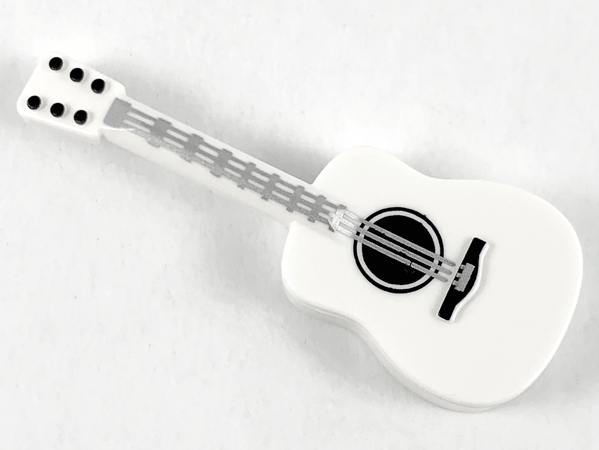 Minifigure, Utensil Musical Instrument, Guitar Acoustic with Silver Strings and Black Tuning Knobs Pattern