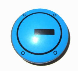 Plate, Round 2 x 2 with Rounded Bottom (Boat Stud) with Black Circle and Rectangle on Dark Azure Background Pattern