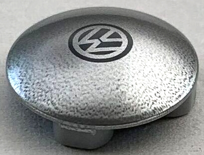 Plate, Round 2 x 2 with Rounded Bottom (Boat Stud) with Black VW Logo on Silver Background Pattern