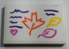 Tile 2 x 3 with Orange Leaf, Yellow Leaf, Dark Pink Leaf and Heart, Dark Purple Lines Pattern (Sticker) - Set 41169