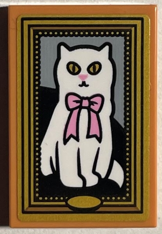 Tile 2 x 3 with Picture of White Cat with Bright Pink Bow in Gold Frame Pattern (Sticker) - Set 76403