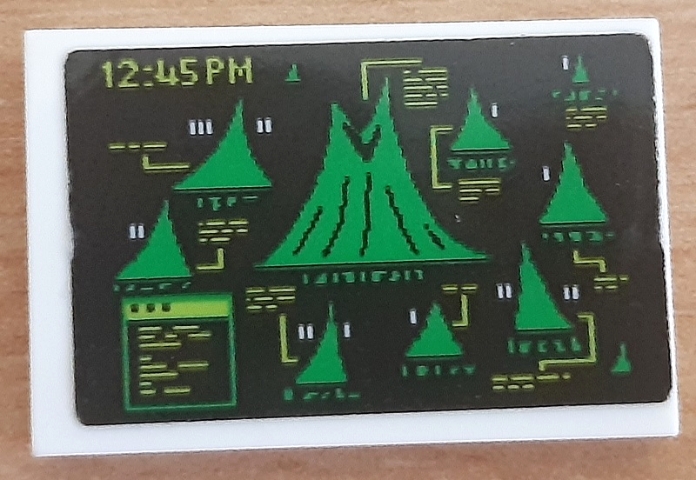 Tile 2 x 3 with Black Screen with Bright Green Volcanoes, Lime '12:45PM' and Lines Pattern (Sticker) - Set 70631