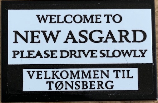 Tile 2 x 3 with 'WELCOME TO NEW ASGARD PLEASE DRIVE SLOWLY' and 'VELKOMMEN TIL TØNSBERG' Pattern (Sticker) - Set 76200
