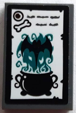 Tile 2 x 3 with Black Cauldron, Eye, Bone and Bat and Dark Turquoise Flames Pattern (Sticker) - Set 41195
