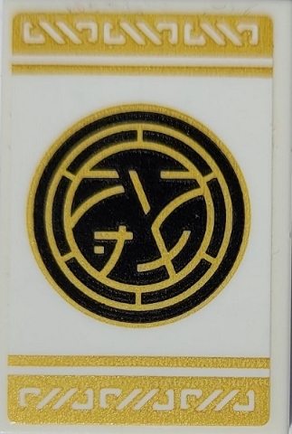 Tile 2 x 3 with Gold Stripes, Lines and Ninjago Core Logo on Black Circle Pattern (Sticker) - Set 71767