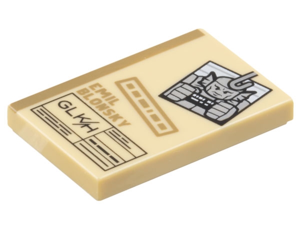 Tile 2 x 3 with Legal File with Dark Tan 'EMIL BLONSKY', Black 'GLK/H' and Minifigure Mugshot Pattern