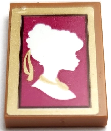 Tile 2 x 3 with White Anna Silhouette on Magenta Background in Gold Frame Pattern (Sticker) - Set 41167