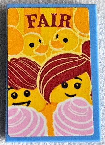 Tile 2 x 3 with Dark Red 'FAIR', Yellow Ducks, and Minifigures with Bright Pink Cotton Candy Pattern (Sticker) - Set 60216