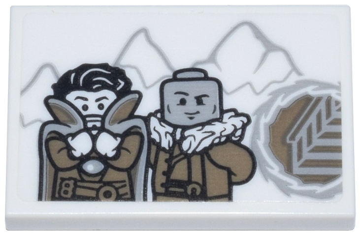 Tile 2 x 3 with Doctor Strange with Cape and Wong with Fur Collar, Light Bluish Gray Mountains and Portal to Dark Tan Staircase Pattern (Sticker) - Set 76218