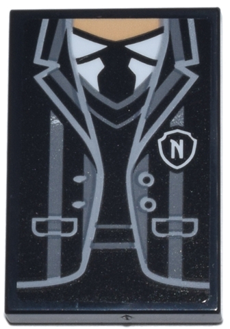 Tile 2 x 3 with Suit Jacket with Dark Bluish Gray Stripes, Light Bluish Gray Trim, White Badge Letter N and Medium Tan Neck Pattern (Sticker) - Set 76780