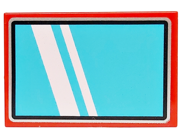 Tile 2 x 3 with Medium Azure Glass with White Reflections / Stripes and Black and Silver Border Pattern (BrickHeadz Optimus Prime Vehicle Windshield)