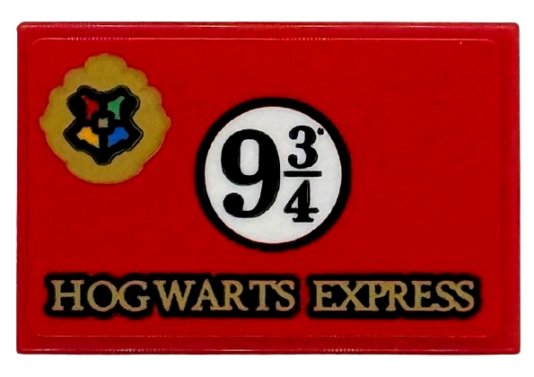 Tile 2 x 3 with Gold Hogwarts Crest and 'HOGWARTS EXPRESS', Black '9 3/4' in White Circle Pattern (Sticker) - Set 76450