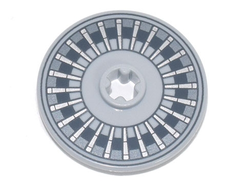 Technic, Disk 3 x 3 with Black and Dark Bluish Gray Circles with Silver Spokes Pattern