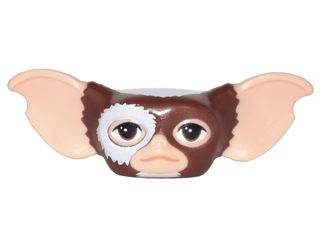 Minifigure, Head, Modified Alien Gremlin Mogwai with Light Nougat Ears and Face, White Fur on Head and Around Eye and Dark Brown Eyes Pattern
