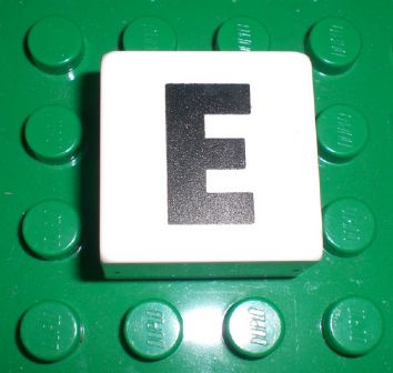 Duplo, Tile 2 x 2 x 1 with Black Capital Letter E Pattern
