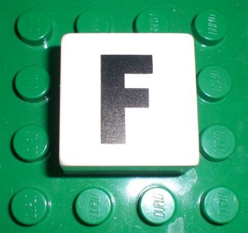 Duplo, Tile 2 x 2 x 1 with Black Capital Letter F Pattern
