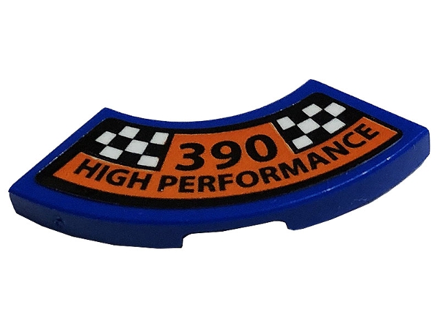 Tile, Round Corner 2 x 2 Macaroni with Black '390 HIGH PERFORMANCE' and Checkered Pattern (Sticker) - Set 10265