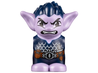 Body / Head Goblin with Pointed Ears, Dark Blue Spiked Hair and Tunic with Utility Belt with Goblin Eye Buckle, Knife and Pouch Pattern
