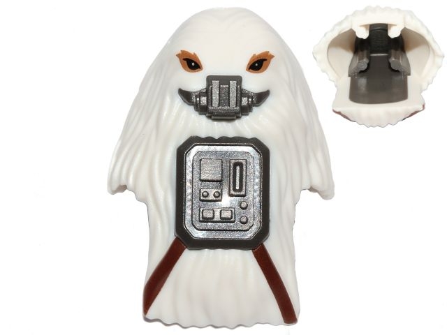 Minifigure, Head, Modified SW Gigoran with Molded Dark Bluish Gray Breathing Mask and Front Panel and Printed Dark Brown Belts Pattern