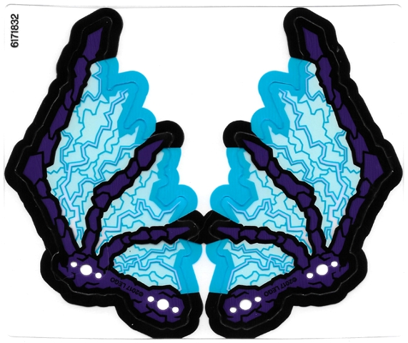 Plastic Wings with Dark Purple Bony Spines and Light Aqua Electric Veins Pattern, Sheet of 2