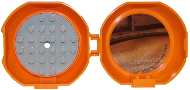 Container, Pod with Light Bluish Gray 6 x 6 Round Plate and Orange 1 x 2 Plate with Ninjago Pattern (Stickers) - Set 853759