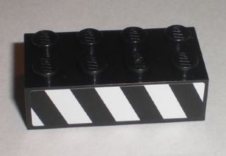Brick 2 x 4 with Black and White Danger Stripes Pattern Model Right Side (Sticker) - Set 8211