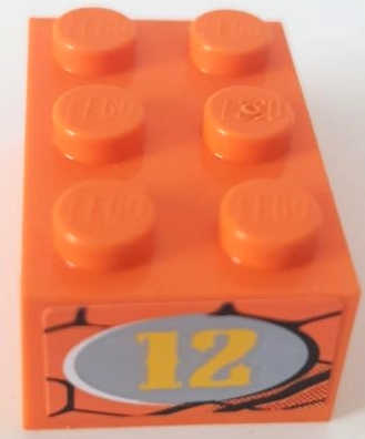 Brick 2 x 3 with Yellow '12' in Light Bluish Gray Oval on Snakeskin Background Pattern on End Model Left Side (Sticker) - Set 8158