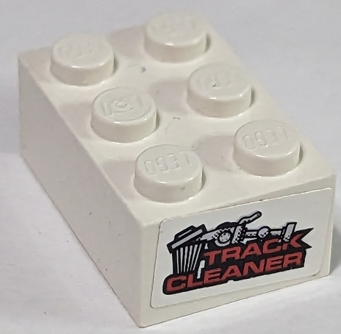 Brick 2 x 3 with Trash Can and 'TRACK CLEANER' Pattern on Both Ends (Stickers) - Set 8182