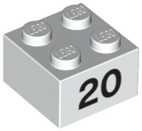 Brick 2 x 2 with Black Number 20 Pattern