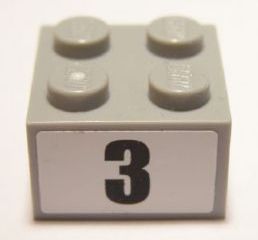 Brick 2 x 2 with Black Number 3 Narrow Bold Font Pattern (Sticker) - Set 8896