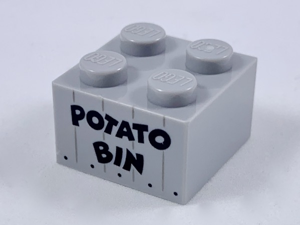 Brick 2 x 2 with Black 'POTATO BIN' Pattern