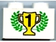 Brick 2 x 2 with Black Number 1 on Yellow Trophy Cup, Green Laurels Pattern