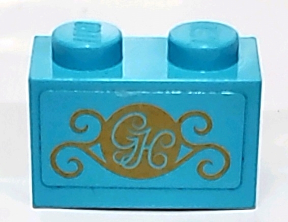 Brick 1 x 2 with Gold 'GH' and Swirls Pattern (Sticker) - Set 41101