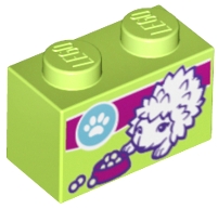 Brick 1 x 2 with White Hedgehog with Dish, Magenta Stripe and Paw Pattern