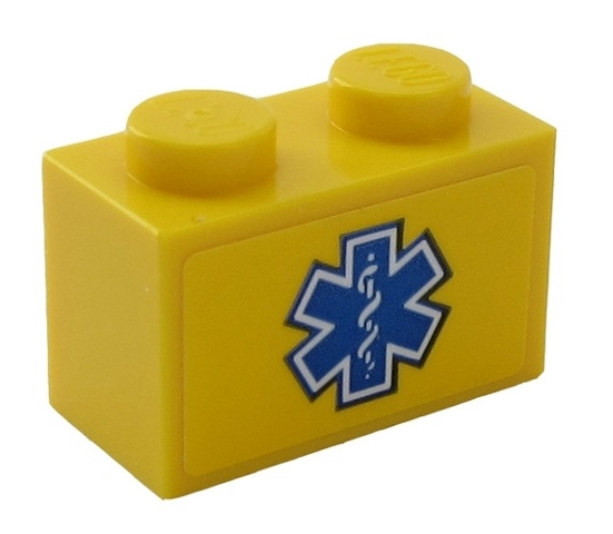 Brick 1 x 2 with Blue and White EMT Star of Life Pattern (Sticker) - Set 60203