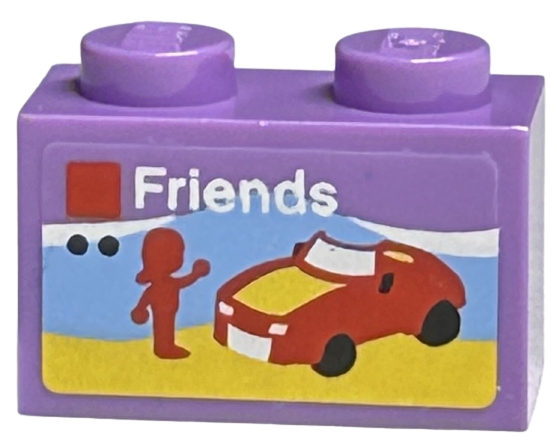 Brick 1 x 2 with LEGO Friends Set Box Art, Red Car and Mini Doll Silhouette on Beach Pattern (Sticker) - Sets 40145 / 40305 and Gear 40359