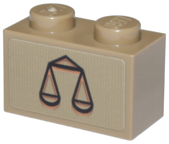 Brick 1 x 2 with Black and Medium Nougat Court Scales of Justice Pattern (Sticker) - Set 76271