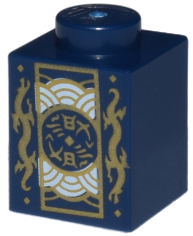 Brick 1 x 1 with Gold Dragons and Rectangle Emblem with Silver Half Circles Pattern