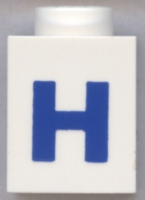 Brick 1 x 1 with Blue Capital Letter H Pattern (Bold Font)